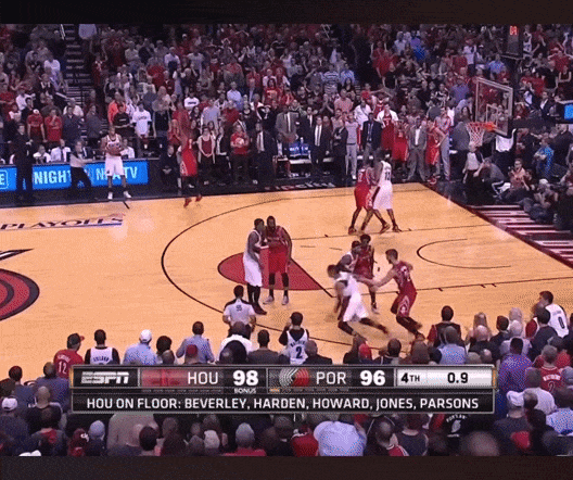 동료의 스크린을 받고 합 스텝을 이용해 빠른 슛 타이밍으로 버저비터를 성공 !